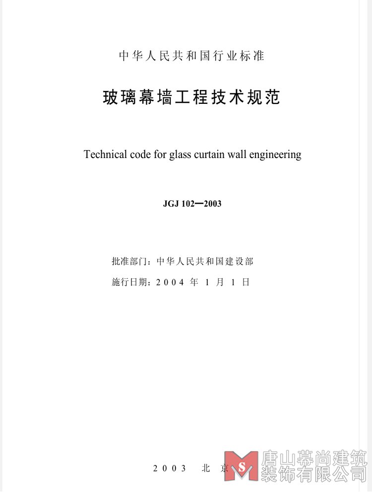 《玻璃幕墙工程技术规范》JGJ102-2003